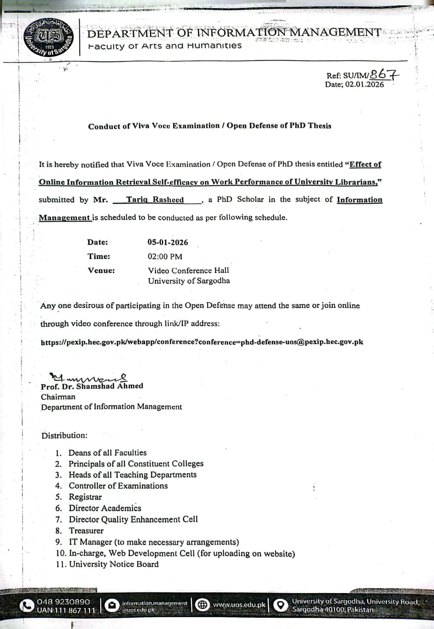 | Conduct of Viva Voce Examination/ Open Defense of PhD Thesis (Information Management) | 02-01-2026